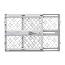 Product Description: North States Windsor Arch Petgate closes firmly yet easily with one simple push, keeping your pet contained and your home protected. The exclusive matte bronze finish is designed for exceptional richness, durability and depth of color. The arch on the gate adds a touch of style and will complement any home decor, while its heavy-duty metal construction is built to last! Gate swings open both ways for added convenience and offers a triple-locking system for peace of mind. To keep the gate open for multiple pass through, simply use the hold-open feature to prevent the gate from closing. The gate pressure mounts easily by using tension knobs to secure the gate in place. Ideal for a variety of room openings or at the bottom of stairs. This matte bronze gate is even JMPA certified for use with children 6 to 24 months of age, making this gate a great home option for keeping all your little loved ones safe. Features: Easy to use - extend tension knobs until gate fits tightly Triple-locking system with easy one-hand operation Self-closing gate with hold-open feature; swings both ways Hard-to-climb barrier Steel construction in a matte bronze finish will complement any home decor Please note: "When you unpack this gate you will notice that it is not square. This is normal and the gate is not damaged. It is manufactured at a pre-set angle so when it is installed properly in the opening, it will maintain the correct amount of tension and prevent it from being pushed out of the opening under normal use. Please read and follow the instruction manual carefully." Instructions: Assembly Required?: Yes Assembly Instructions: Step 1:Measure width of the openingStep 2:Insert extension pins into hole on the outside of the gate frame.Slip extensions over the pins.Slide both the upper and lower tension bolts with rubber pads into the holes on the outside of the extension.Step 3:Place the gate in the opening so that the bottom of the gate frame is completely flat on the floor.Secure the gate, fasten the mounting cups to the wall by aligning them with the bolts with rubber pads. Use double coated tapes or screw provided.Step 4:Tighten both of the bottom tension knobs by turning them clockwise at the same time.Tighten both of the upper tension knobs by turning them clockwise at the same time, so the gap between the gate and upper right corner comes together, leave a 1.5-2mm gap. Care and Cleaning Instructions: Clean the safety gate using warm water and a mild detergent. Use a soft cloth or sponge to avoid scratches. Never use solvents or chemicals to clean the safety gate. Safety: Safety Warnings: Children have died or been seriously injured when gates are not securely installed. Always install and use gates as directed using all required parts.Stop using when a child can climb over or dislodge the gate.Install only with locking/latching mechanism securely engaged.To prevent falls, never use at top of stairs.Never use to keep child away from pool.This product will not necessarily prevent all accidents.Never leave child unattended.Periodically check all fasteners to be sure they are tight and secure, stop using gate if any parts are missing or become damaged. Specification: Width: Adjusts to fit 28.25 - 38.25 wideMounting: Pressure MountHeight: 28.5Material: MetalColor: Matte Bronze