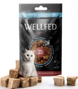 Mini mono-protein delicious bites with 96% fresh duck meat for cat. Sugar free, gluten, cereals. Suitable for allergic cats.Ingredients:Fillet duck: 96.3% glycerol: 2.5% sorbitol, 1% Salt 0.3%A typical analysis:Protein: 41%, Fat: 2%, Ash: 3%, fiber 0.2%, humidity: 23%Packaging:50gm Packet